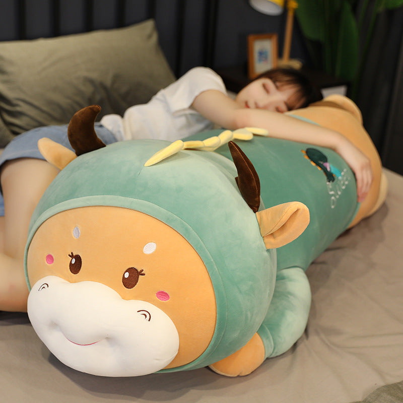 With its adorable cow face peeking out of a dinosaur costume, this long plush adds a pop of quirky charm to any room. Made from incredibly soft, skin-friendly fabric and filled with fluffy cotton, it’s perfect for wrapping your arms around.