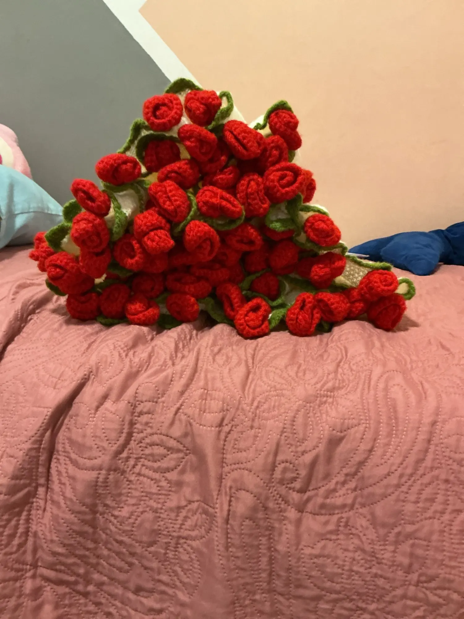 This is the gift that finally does both. At first glance, it's a breathtaking, oversized bouquet of beautifully crocheted roses. Then, the magic happens. It unfolds to reveal a soft, cozy 1-meter blanket, ready to be snuggled.